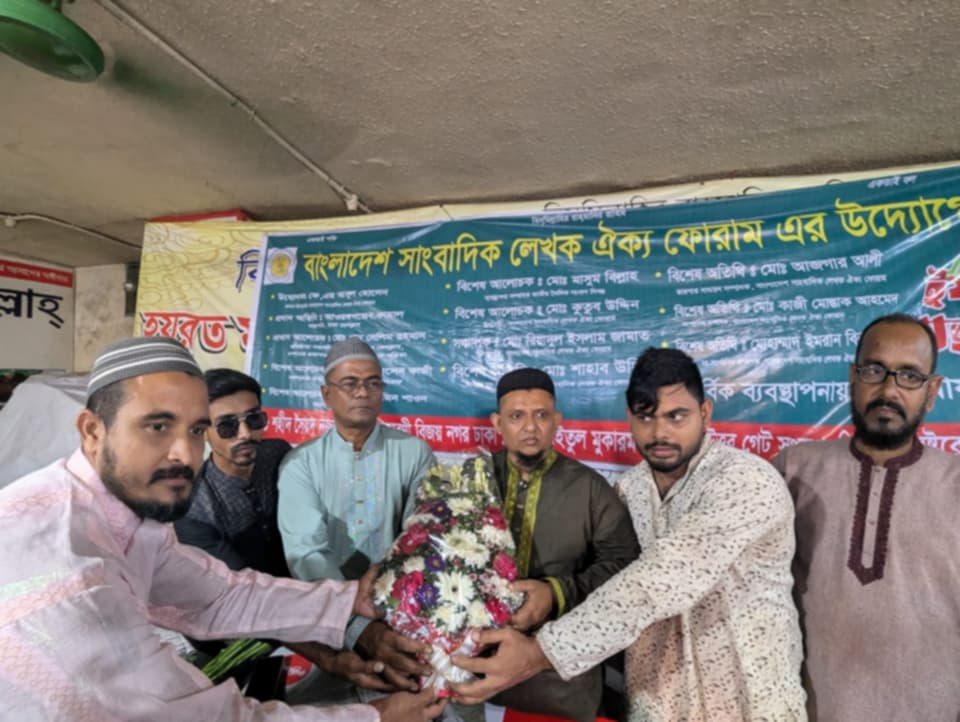 আজ শুক্রবার ১৩ রমজান বাইতুল মোকাররম মসজিদের উত্তর গেট সংলগ্ন বিসমিল্লাহ রেস্টুরেন্ট এন্ড পার্টি সেন্টারে অনুষ্ঠিত হয়েছে। বাংলাদেশ সাংবাদিক লেখক ঐক্য ফোরাম এর কর্ত্তৃক আয়োজিত ইফতার মাহফিল ও আলোচনা সভা। প্রধান অতিথি হিসেবে উপস্থিত ছিলেন: আওরঙ্গজেব কামাল সভাপতি - ঢাকা প্রেসক্লাব। উদ্ধোধক হিসাবে উপস্থিত ছিলেন, কে,এম আবুল হোসেন - প্রধান উপদেষ্টা বাংলাদেশ সাংবাদিক লেখক ঐক্য ফোরাম