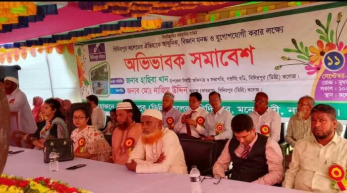 খন্দকার সেলিম রেজা স্টাফ রিপোর্টার। আজ বুধবার ১১ ই সেপ্টেম্বর ২০২৪ খ্রি.নরসিংদীর মনোহরদীতে অবস্থিত খিদিরপুর (ডিগ্রী)কলেজ এর আয়োজনে কলেজ প্রাঙ্গনে অভিভাবক সমাবেশ অনুষ্ঠিত হয়েছে।উক্ত সমাবেশে খিদিরপুর (ডিগ্রী)কলেজ এর ভারপ্রাপ্ত