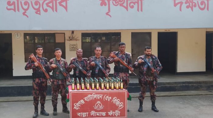 হবিগঞ্জ ৫৫ বিজিবির টহল অভিযান পরিচালনা করে ৪৪ বোতল ভারতীয় মদ ও ৯০ কেজি বাংলাদেশী রাবার আটক করেছে।